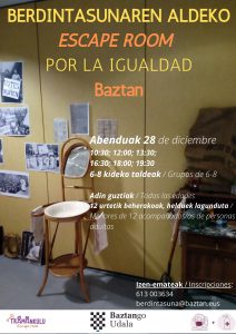 Este Escape Room propone un viaje al pasado, para representar la vida de mujeres* y hombres* de mediados de siglo XX. La brecha salarial, el sufragio universal, pone de manifiesto lo conseguido en la actualidad, pero también la cruda realidad y el trabajo que nos queda por hacer.