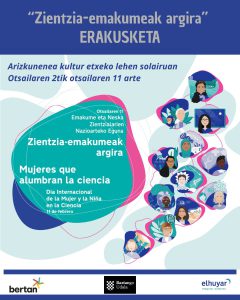 Además, también se podrá visitar la exposición “Mujeres que alumbran la ciencia” en la casa de cultura Arizkunenea, basada en las imágenes que se expondrán en la iniciativa “Escaparates 11 de febrero”.