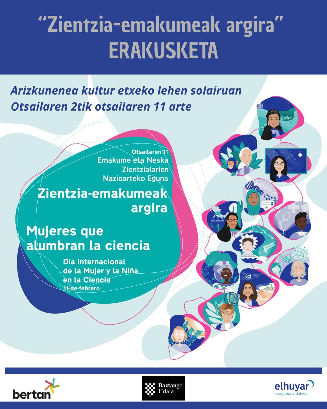 - Con motivo de la celebración del Día Internacional de la Mujer y la Niña en la Ciencia, el Ayuntamiento de Baztan y la BERTAN se ha adherido a la iniciativa “Escaparates 11 de febrero” promovida por Elhuyar.