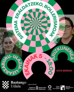 Data esanguratsu hauek direla eta, Baztango Udalak, Berdintasun Zerbitzuaren bitartez eta Nafarroako Gobernuaren diru-laguntzarekin, “Sistema eraldatzeko, bollerismoak” hitzaldiari data berria topatu dio, ekainaren 5ean, ortzeguna, 18:00etan, Elizondoko Arizkunenea Kultur Etxean.