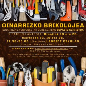 Baztango Udalak, Berdintasun zerbitzuaren bidez, “Oinarrizko Brikolaje lantegia” martxan jarriko duela jakinarazten du, udalerriko emakume* guztiei zuzendutako ekimena. Tailer praktiko honek etxeko mantentze-lan arruntetan ohiko tresnak erabiltzeko autonomia, konfiantza eta esperientzia sustatzea du helburu, hau da, matxuratutako etxeko ohiko tresnetan konponketa txikiak egiteko beharrezkoak diren oinarrizko ezagutzak eta behar diren erremintak erabiltzen ikasiko dute.
