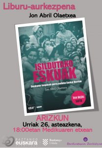 Baztango Euskara eta Berdintasun Zerbitzuek Jon Abrilen “Isildutako eskuak” liburuaren aurkezpena antolatu dugu.