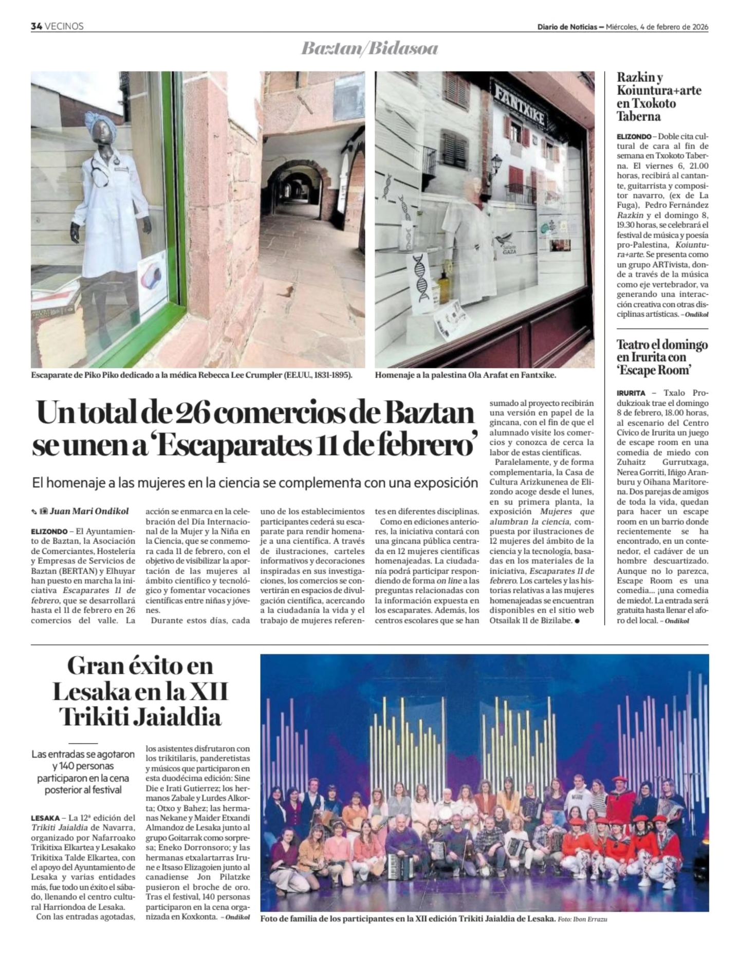 Aurten, Baztango Udalak, BERTAN Elkartearekin elkarlanean, Elhuyarren “Otsailaren 11ko Erakusleihoak” kanpainarekin bat egin du. Ekimen honen bidez, bailarako 26 saltokik parte hartu dute, beren erakusleihoak emakume zientzialarien omenez apainduz, eta berdintasunaren aldeko mezua herriko kaleetara eramanez.